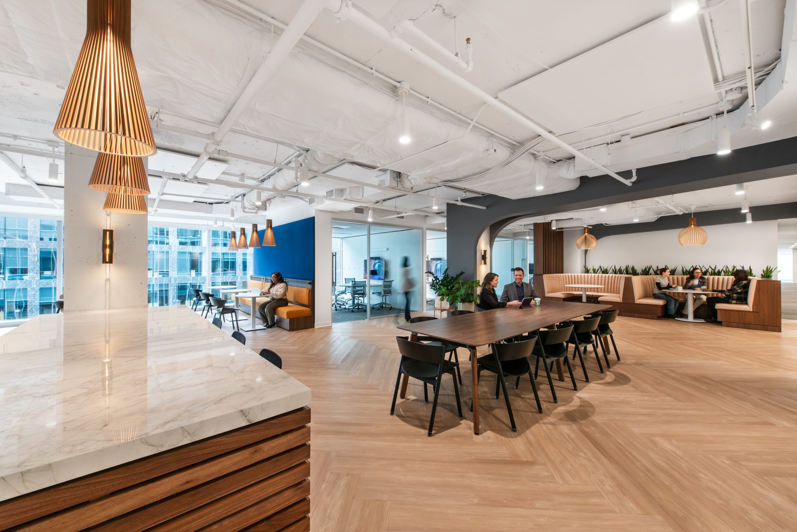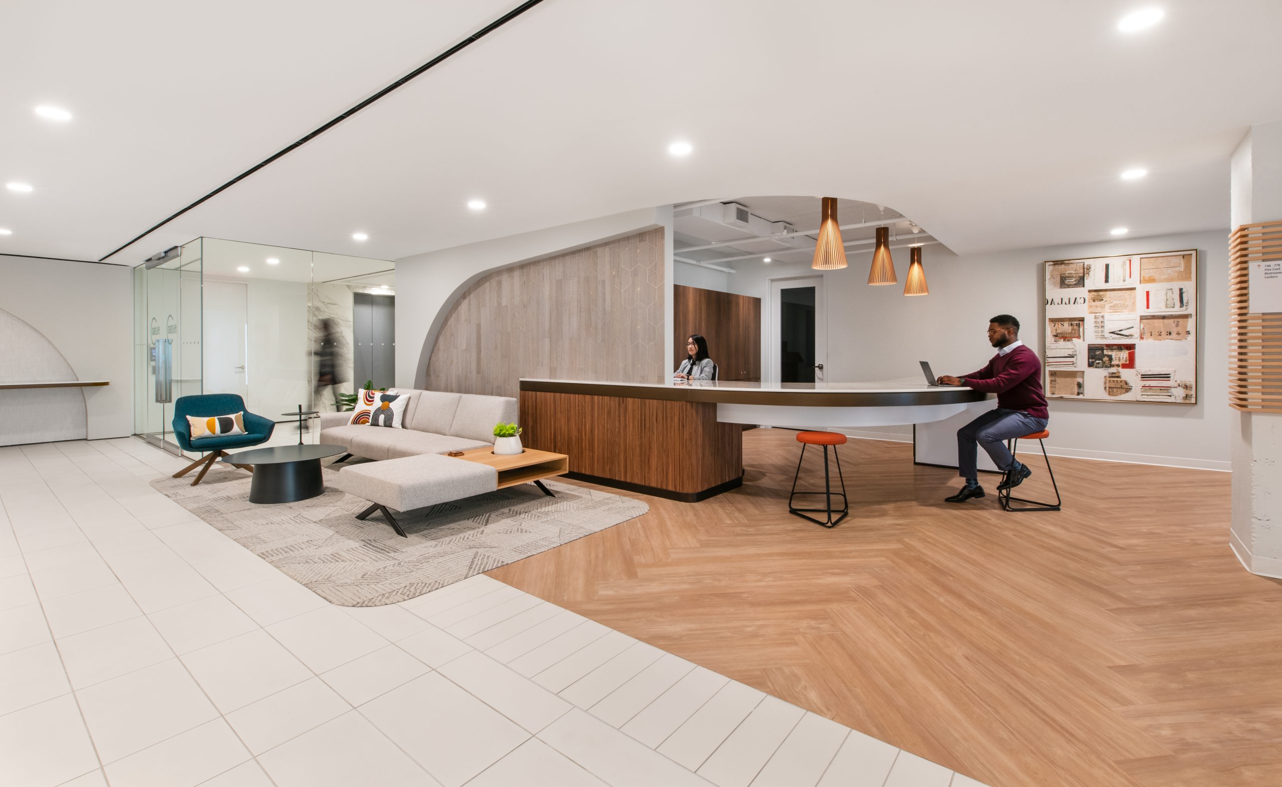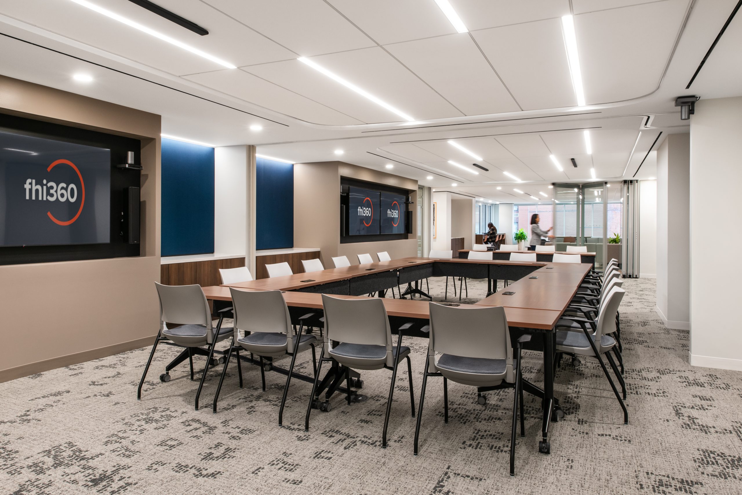 FHI 360 is a nonprofit human development organization that is dedicated to improving lives in lasting ways by advancing integrated, locally driven solutions. Their existing space presented challenges with the rise of hybrid work. They recognized the need to downsize their office space and chose to relocate their office and go from 230,000 SF to 59,000 SF to create a more efficient, sustainable, and inclusive workplace. They wanted new space to adapt to changing work patterns while maintaining organizational effectiveness.
