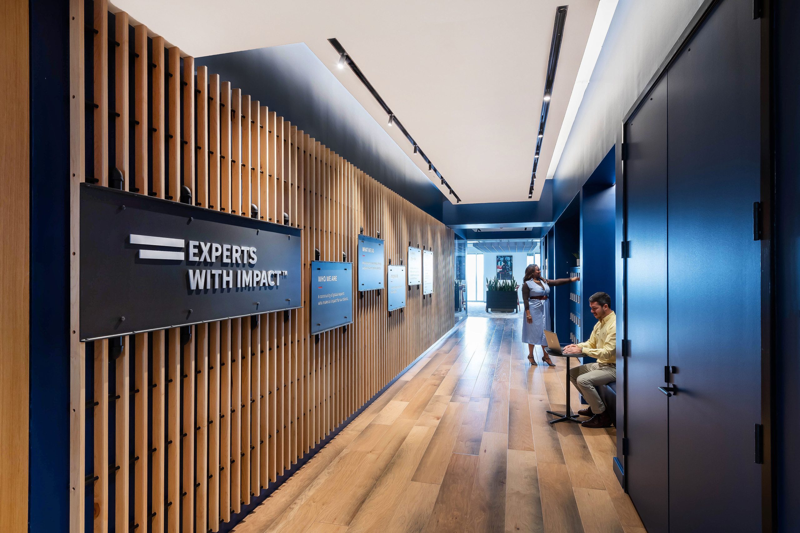 We offer efficient and valuable input to help their Real Estate team think strategically about the employee experience that we are co-creating. Together, we provide FTI with comprehensive solutions ranging from core and ancillary furniture, to architectural solutions and space measurement analytics. Our efforts also include consultation with their IT and AV groups, and delivery of thoughtful applications to support their users work preferences.