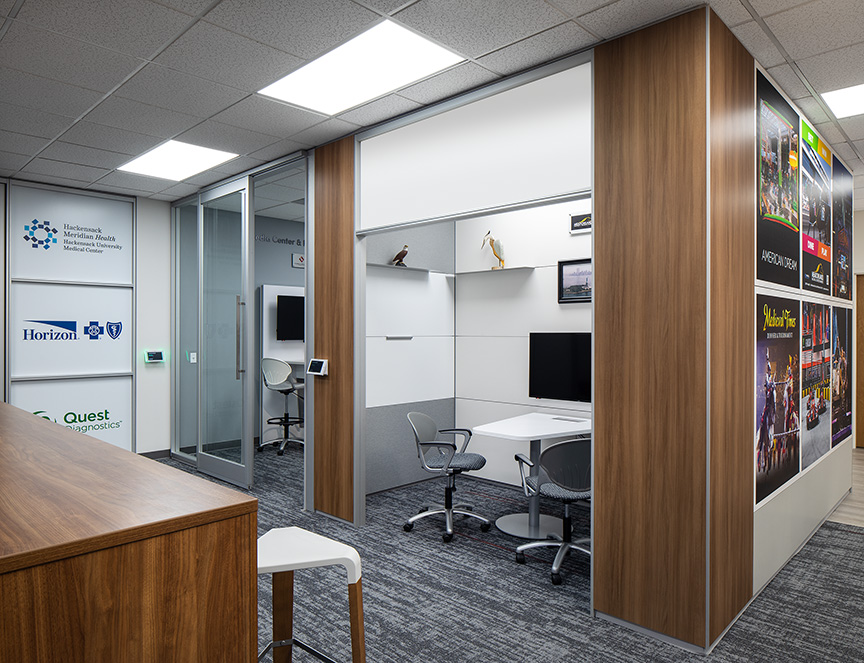 It offers huddle rooms, open office areas and ideation & collaboration zones to enhance networking. It also includes state-of-the art technology solutions for a podcast studio, two video conference rooms and an Innovation Learning Center with a capacity of 80 people. The ILC serves as a unique business learning environment and is home to the Meadowlands 2040 Foundation, which partners with colleges and universities to conduct economic data research. Powered by technologies typical only to the largest corporations, members have access to a jumbo video wall, audio & video studio capabilities, ultra-secure WiFi, wireless printing and more.