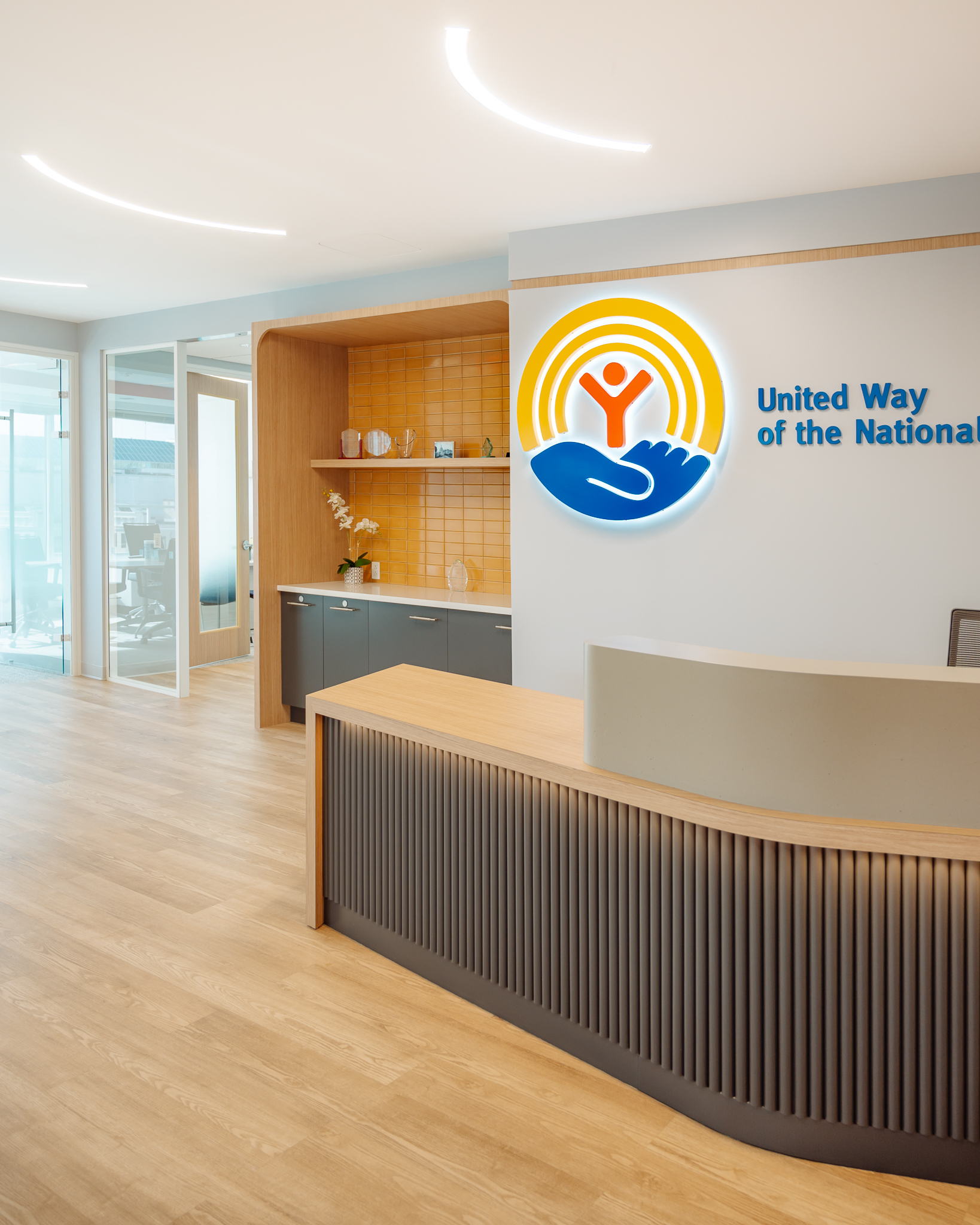 Our team collaborated with United Way and sshape to design and fit-out their new 8,600 square foot office space in Downtown Washington, DC. One of the largest privately funded charities in the world, the community-building nonprofit wanted to upgrade their workspace to energize their staff to return to the office post the COVID pandemic.