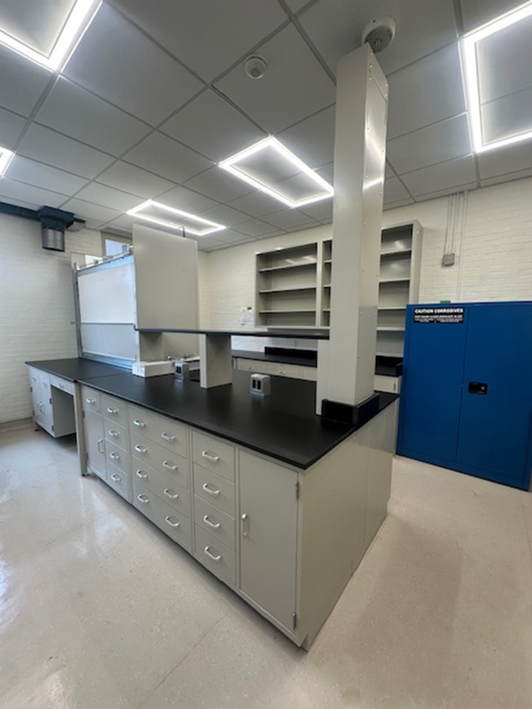 Scope includes laboratory casework, specialty cabinets, fume hoods, demolition, installation, and warehousing, delivered in phased, eight-week turnarounds to maintain academic continuity. Completion is targeted for Summer 2026.